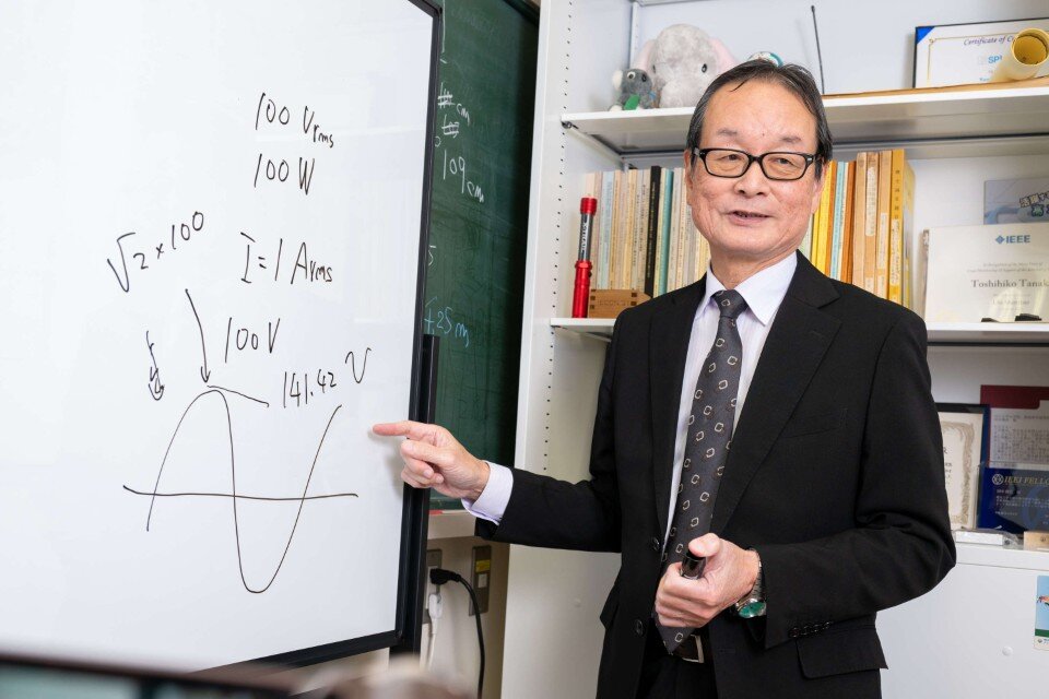 普段、私たちが何気なく使っている電気,しかしその電気にも、「品質の良いきれいな電気」と、「品質の悪い電気」がある、ということを知っている人はほとんどいないと思います。電力の品質が良好でないと、電力の安定的な供給に支障をきたすばかりでなく、電気を使う様々な機器が誤動作するかもしれません。そういった電力品質保証を中心として、家庭用電源としてのEV(電気自動車)の活用法など、様々なテーマに取り組んでいるのが田中先生です。