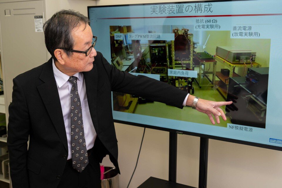 EVについては、別の研究も行っています。料金の安い夜間電力をEVのバッテリに貯めておき、昼間はEVの電力を家庭用で消費します。電力網に戻して売電することもできますが、今は売電価格が安く、売れば売るほど損をする状況です。そこで、一切電力網に戻さない、といった制御法に取り組んだのです。安い夜間電力を昼間に自家消費すれば、昼間の電力を使う必要がなくなります。つまり、夜間と昼間の電力料金の差額分だけ、利益が出るわけです。これも実験してみたところ、電力品質の高い電力が得られることも確認できました。