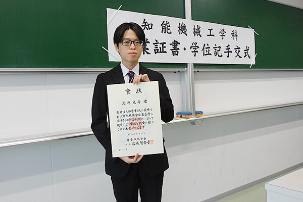 知能機械工学科の学生が「日本機械学会畠山賞」を受賞しました!