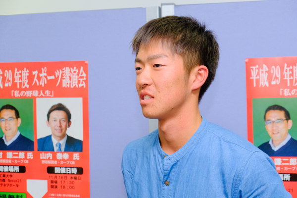 「お二人が現役で活躍されていた頃は、生まれたばかりなので記憶はほとんどありませんが、偉大な選手だったということは知っています。山内さんがおっしゃっていた『監督やコーチの指導が納得できず飲み込めなくても、後になって言われた意味が分かってくる』という話は、私も同じような実体験があり、とても共感できました。指導者からの言葉を大切にしていきたいですね。『野次が聞こえても気にならない』という、プロのメンタルの強さも見習いたいと思いました。部内のレギュラー争いはもちろん、来季のリーグでも上をめざして戦っていきたいです」