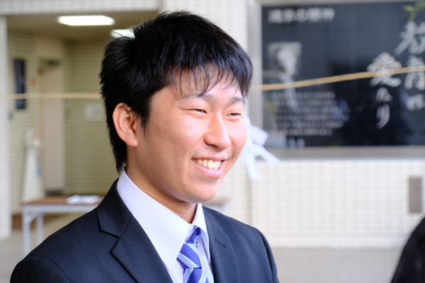 「今年の鏡開きは例年とは違う斎主さんにお願いさせていただくことになったので、準備段階からしっかり打ち合わせを重ねてきました。代替わりした自治会執行部として初めての行事が滞りなく終了して一安心です。毎年、大学に関係するすべての人の健康と安全を祈願しています。自治会執行部としては、今年は貸出車両の安全運転を特に呼び掛けていきたいです。また執行部内では、後輩たちにしっかりと引き継ぎできるよう、ていねいな事業運営を心掛けていきます。」