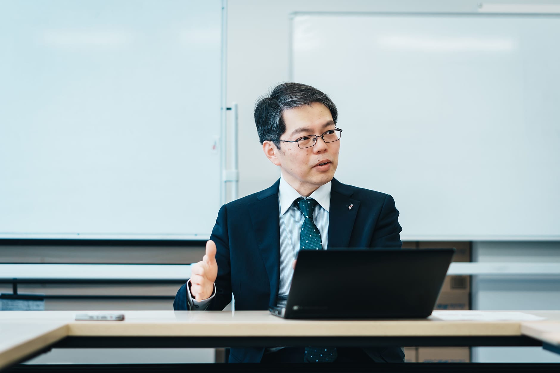 - そうですね。一方、なかなか目標が立てづらい時代でもあるので、やりたいことが見つからない学生には「目の前の勉学に全力で取り組むことで見つかる“やりたいこと”もある」と伝えています。今の学びが将来の仕事にどう活きるかイメージできる授業を展開したいと思いますが、AIなどのデジタル技術は日々進化しており、常に学生の興味を引く授業を進めるためには、教える側も日々勉強です。